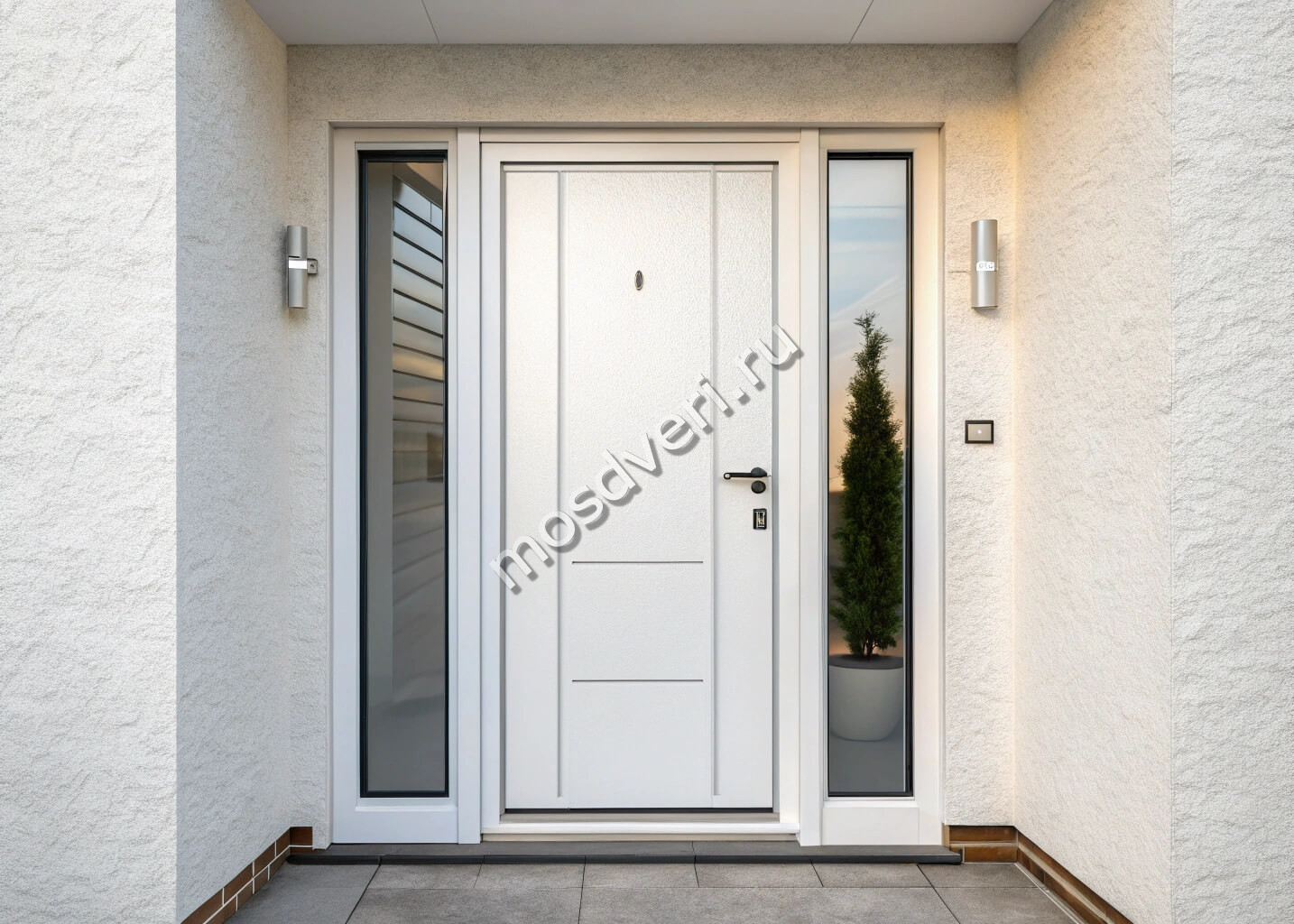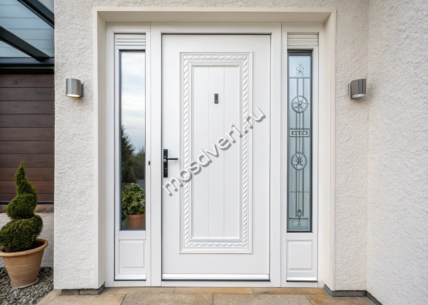 Белые входные конструкции — универсальное решение для современных квартир и частных домов. Такой светлый оттенок отлично вписывается в любой стиль интерьера, визуально расширяет пространство и придает помещению элегантность. Компания "Мосдвери" специализируется на изготовлении качественных стальных изделий с различными вариантами отделки МДФ-панелями.