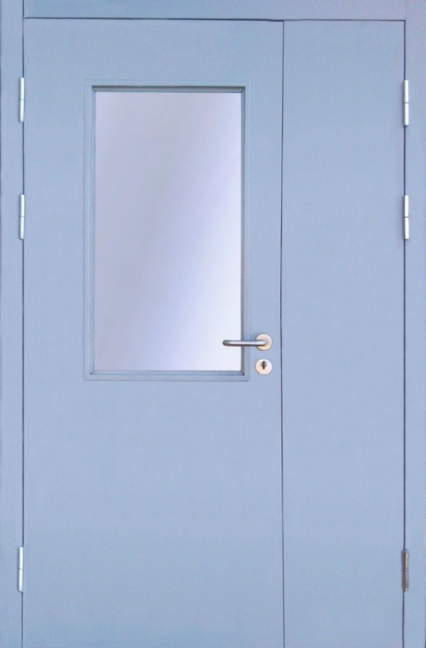 Подъездная дверь со светло-синим МДФ и стеклом — сочетает в себе эстетичность и максимальную защиту.