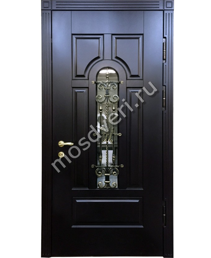 Классическая дверь со стеклом и ковкой для загородного дома — сочетает в себе эстетичность и максимальную защиту.