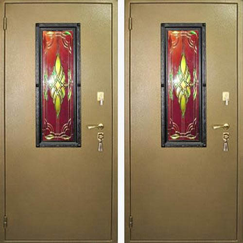 Уличная стальная дверь с порошковым окрасом и витражами в Сосновом Бору